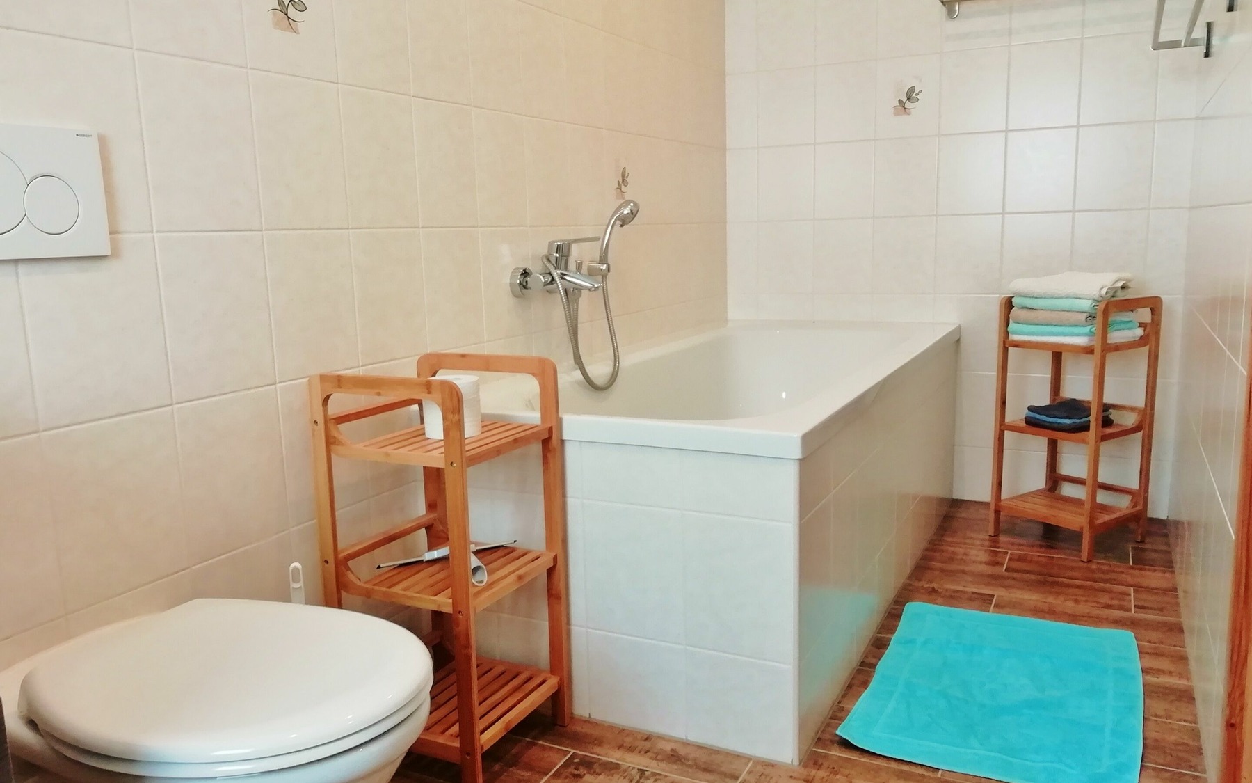 Die 55 m² große Ferienwohnung ist modern und liebevoll eingerichtet. Das Wohnzimmer ist mit Flat-TV, Sat-Anlage und Musikanlage ausgestattet und im Schlafzimmer finden Gäste ein Doppelbett (1,40 m) sowie einen Kleiderschrank. In der vollausgestatteten Küche finden sie Backofen, Induktionsfeld, Geschirrspüler, Wasserkocher, Kaffeemaschine, Toaster und weitere Annehmlichkeiten. Das moderne Badezimmer ist mit einer Badewanne ausgestattet.